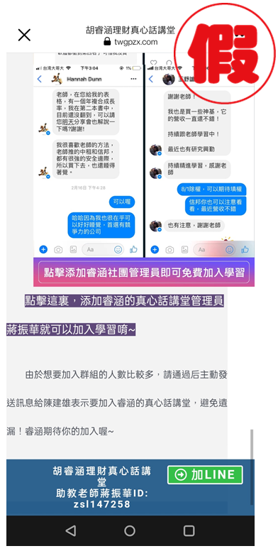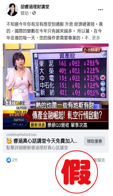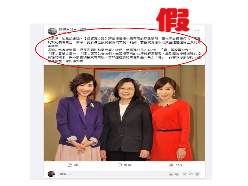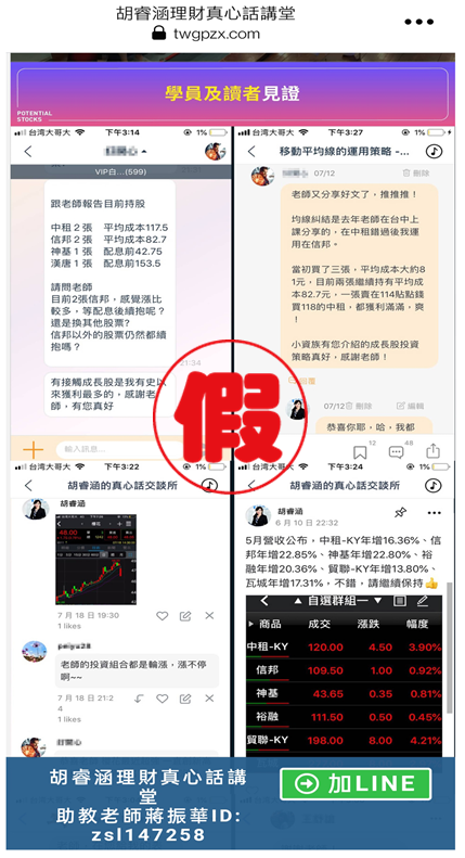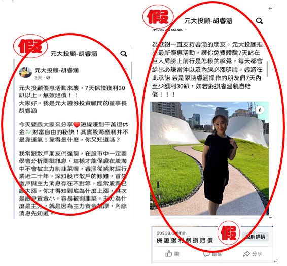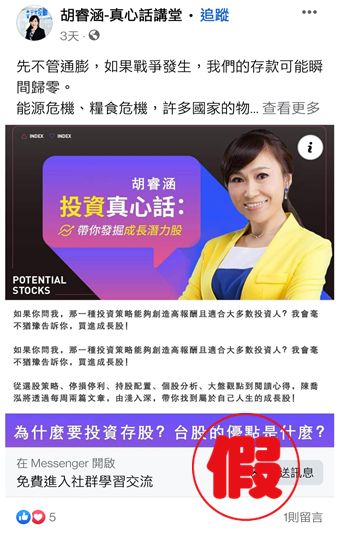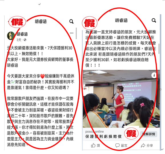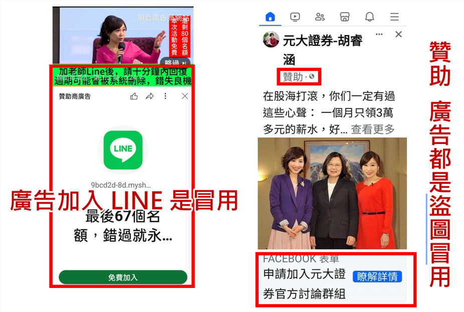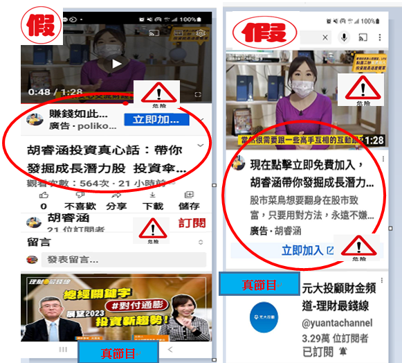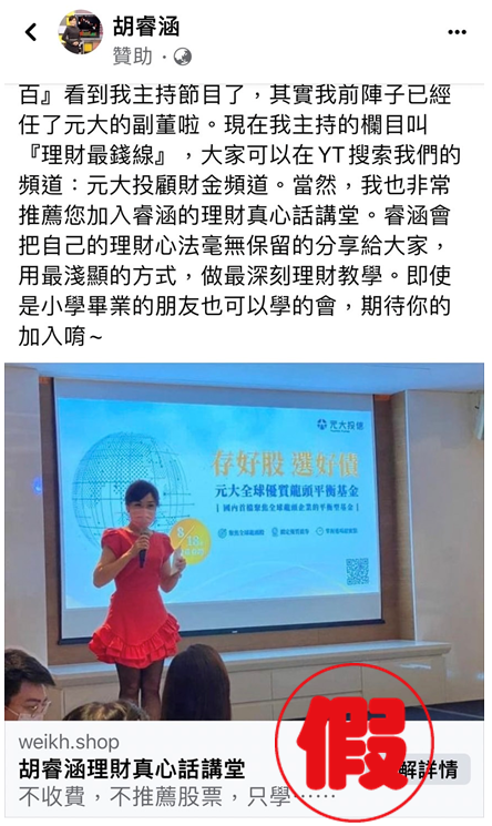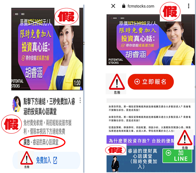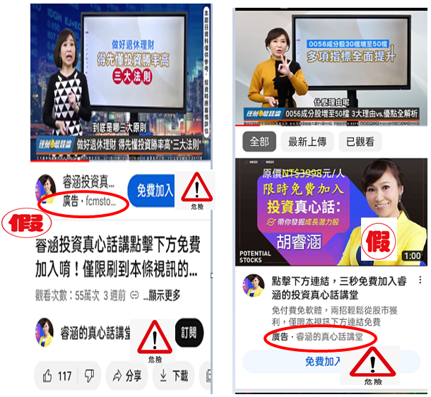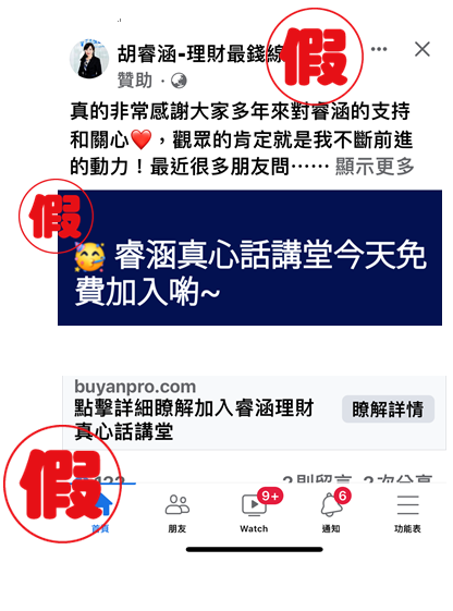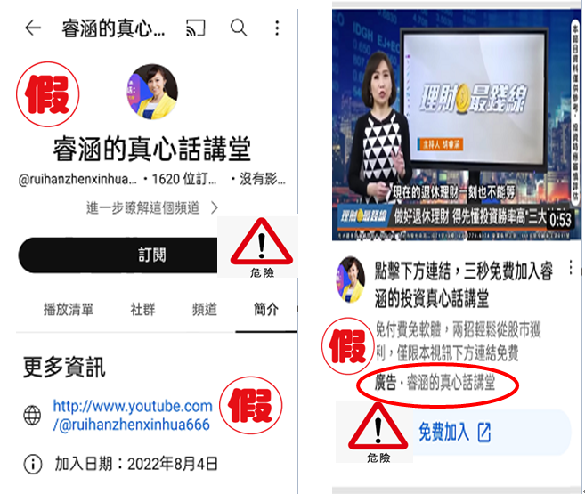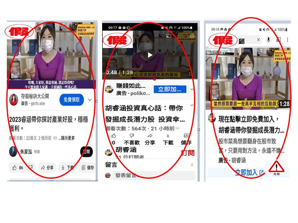 近期有不明人士冒用本公司「理財最錢線」節目、胡睿涵董事長名義,盜用照片,冒名成立(FB)臉書專頁及社群網站。甚有在YouTube製作假(影片)廣告,頻繁投放,致社會大眾誤認,藉此誘使點選假網站或「加Line」或成為投資群組會員或稱可提供投資建議、個股等情形。本公司特此澄清,任何人藉本公司、董事或員工名義、或稱其有合作關係,提供投資個股或策略,勸誘交付財物或個人資料,皆屬詐騙,敬請投資人提高警覺,切勿輕信或點選加入陌生社群或網站,以免權益受損(財物損失或個人資料遭竊)。
