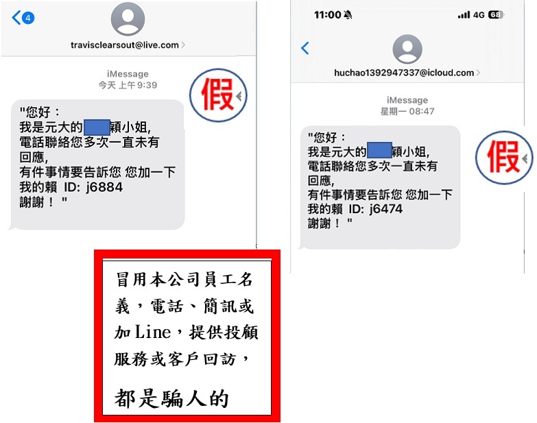 投資人如有對本公司名稱或任何宣稱與本公司有業務合作之個人或法人等有關訊息之疑義者,可以透過以下方式進行查證: